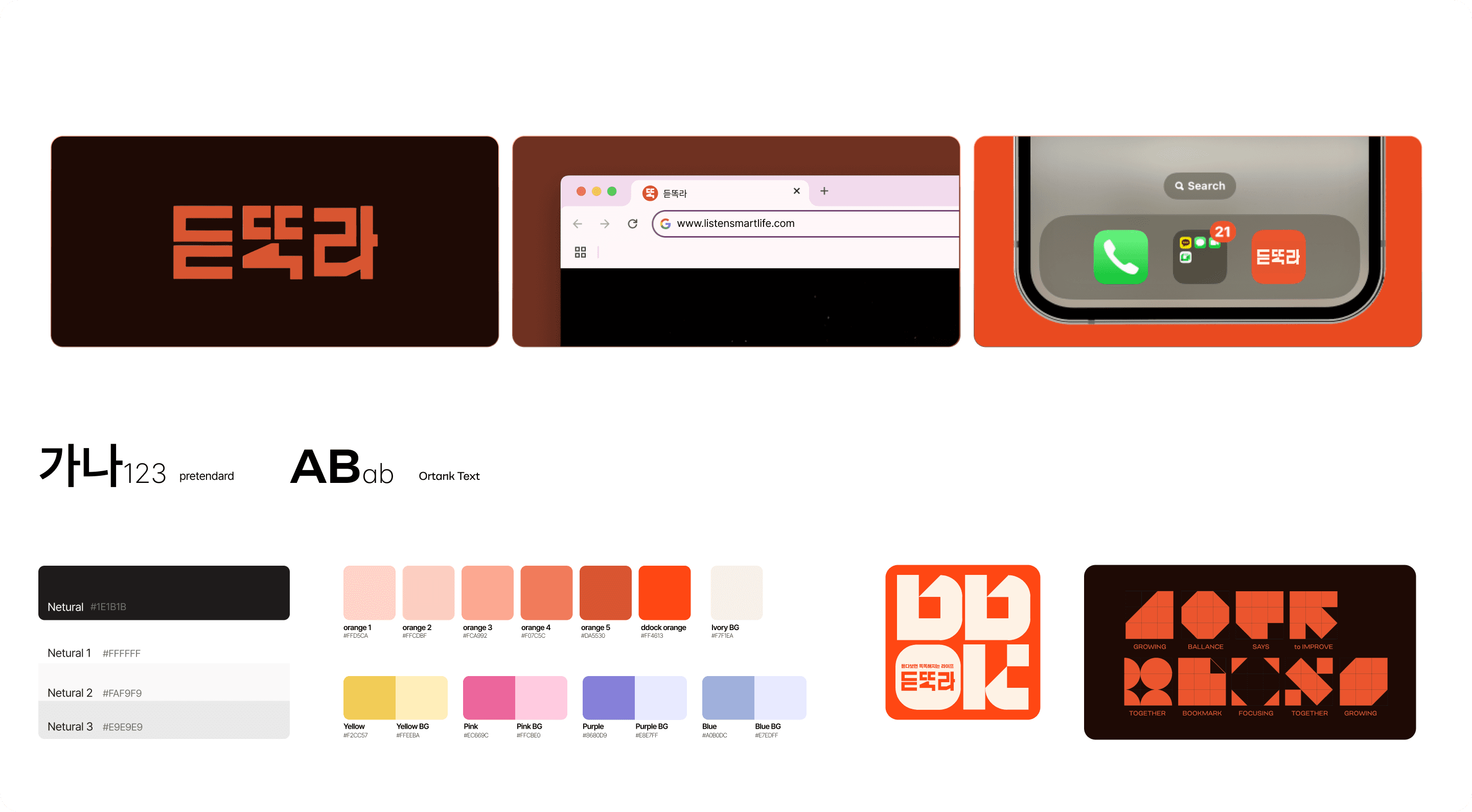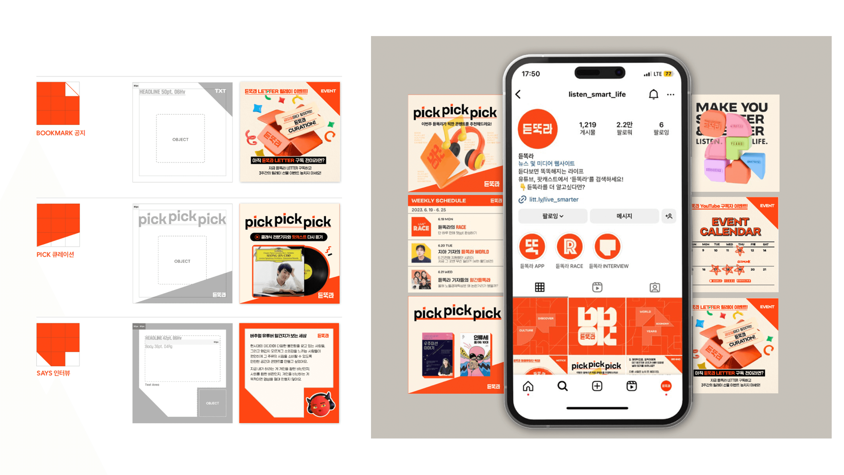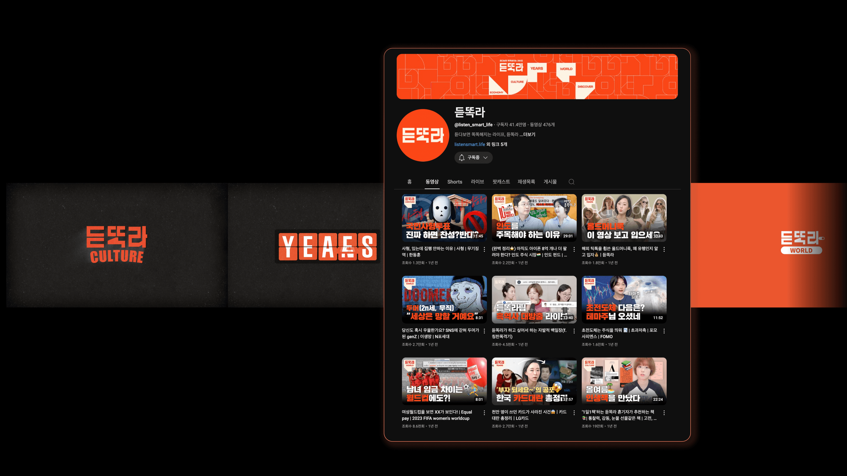 '중앙일보'의 사내 벤처 '듣똑라'입니다. 2030을 위한 영상 콘텐츠와 아티클을 만듭니다. 유튜브, 팟캐스트를 종합 구독자 70만 명의 채널이며, 저는 브랜드 시작부터 종료까지 디자인을 책임졌습니다.